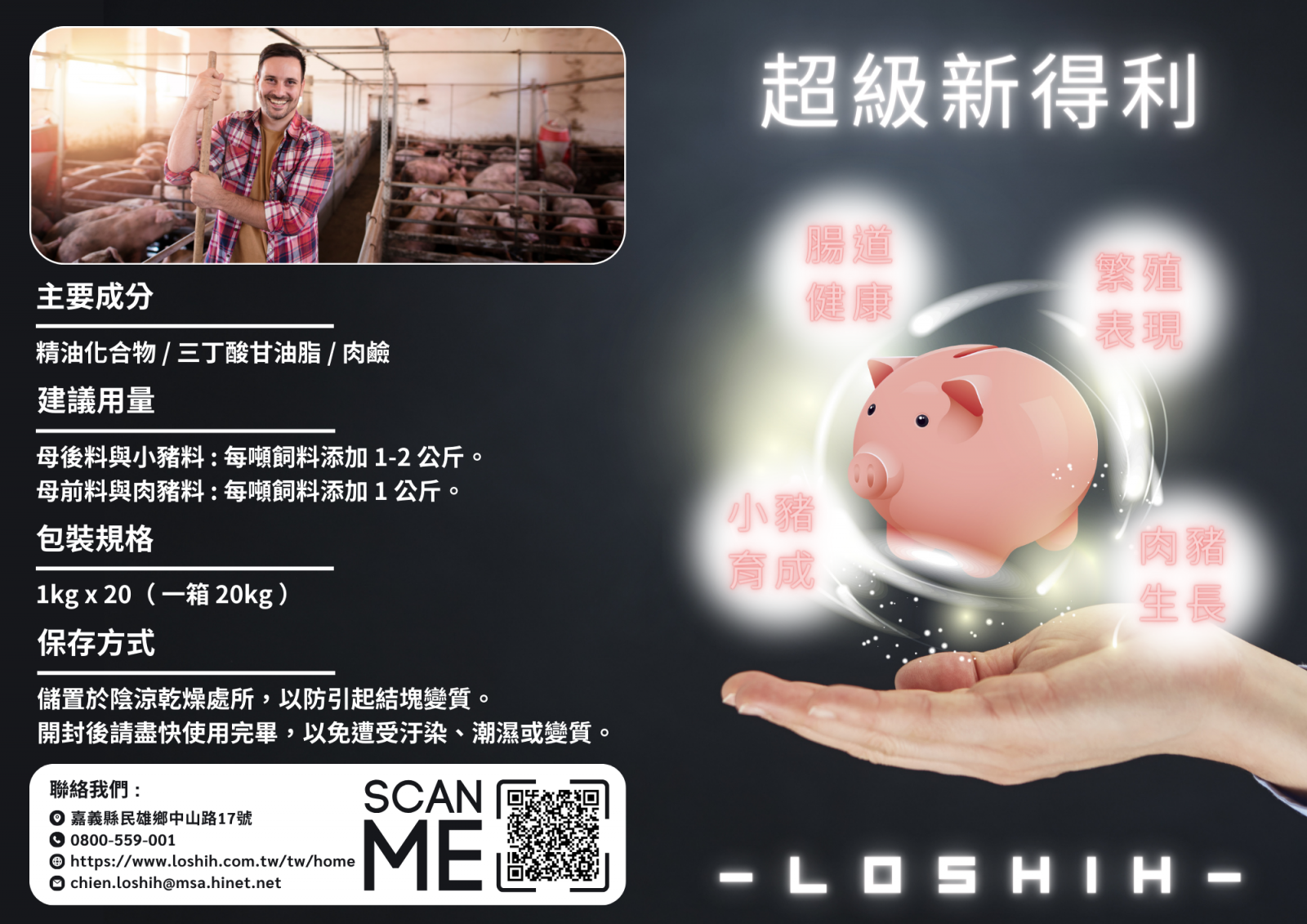 產品分類選單 羅仕營養補助劑 羅仕精靈精料 羅仕生技功能包 羅仕客製化精料功能包 合作品牌產品 豬 牛 家禽 水產 超級新得利 健康生長 母豬性能 公豬性能 超級新得利 NO.05 適合物種 產品效能 • 提升腸道健康。 • 提升母豬繁殖表現。 • 提升小豬育成率。 • 提升肉豬生長表現。 詳細介紹 超級新得利 卡克斯 Plus+ 羅仕C+ 骨勇素 鱻蛋白 回上一頁